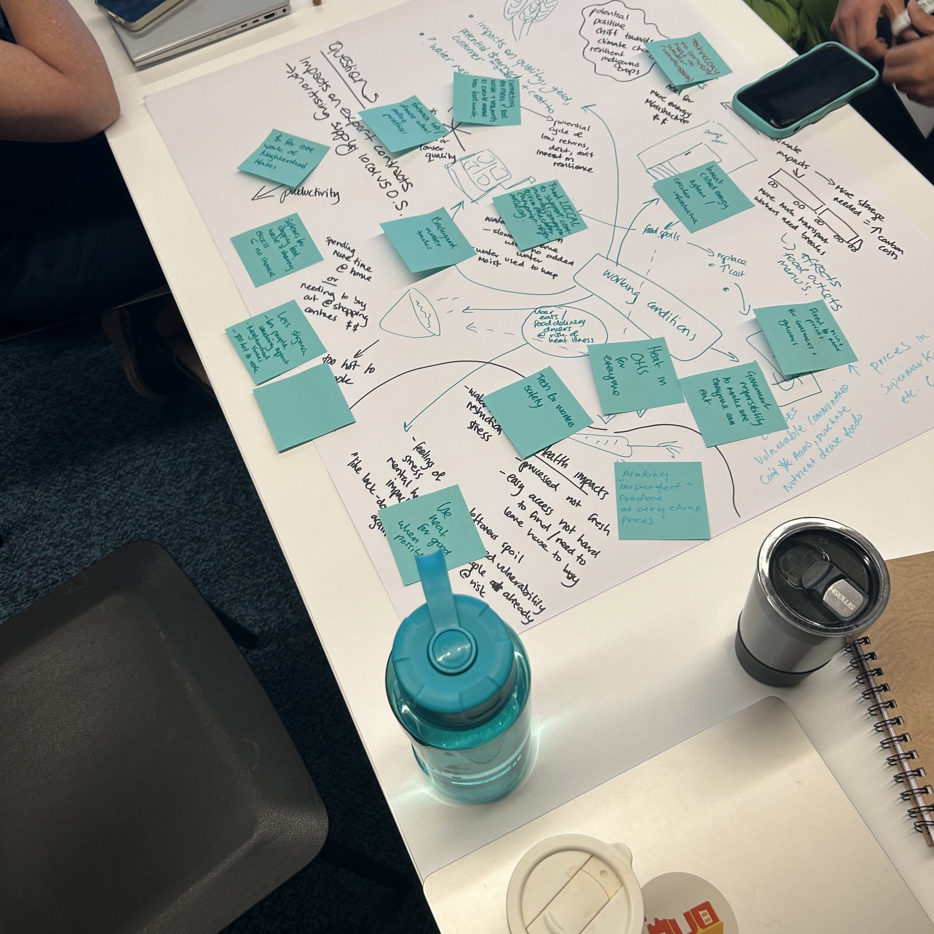 Participants were asked to consider how a prolonged heatwave could impact every stage of the food system. Key questions included: How would food be grown, stored, transported, and accessed during extreme heat? How would it affect how we cook, eat, and care for one another? And what happens to food waste, can it be managed differently or turned into a resource?
